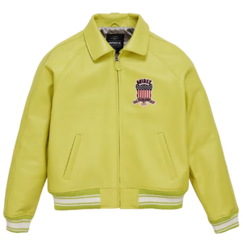 Avirex Jacket Light Yellow Real Bomber American Flight Leather Jacket