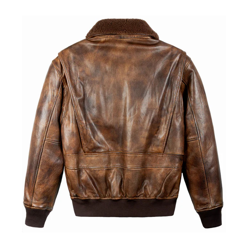 Crafted from high-quality, distressed genuine leather, the G-1 delivers an authentic vintage look that only gets better with age. The standout removable faux shearling collar adds both warmth and a bold, classic touch, making it ideal for cooler seasons.